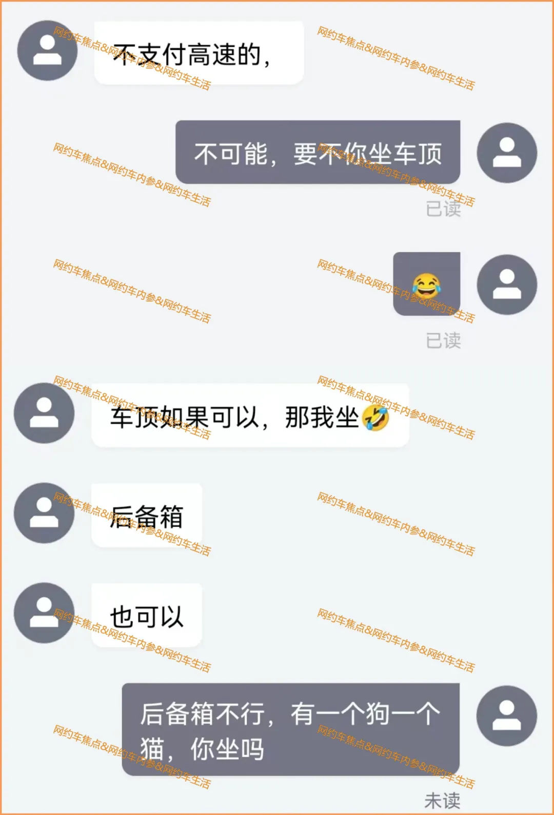 王师傅直接说,后备箱不行,有一个狗和一个猫,你坐吗?